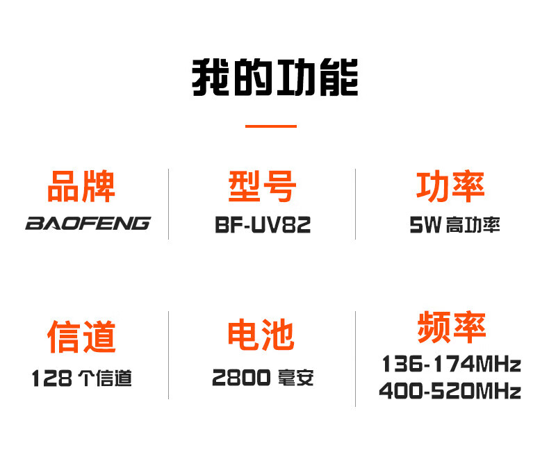 商品名称:宝锋(BAOFENG)BF-UV82 对讲机远距离双段双守手台无线车载电台大功率数字调频对讲器户外自驾游手持机