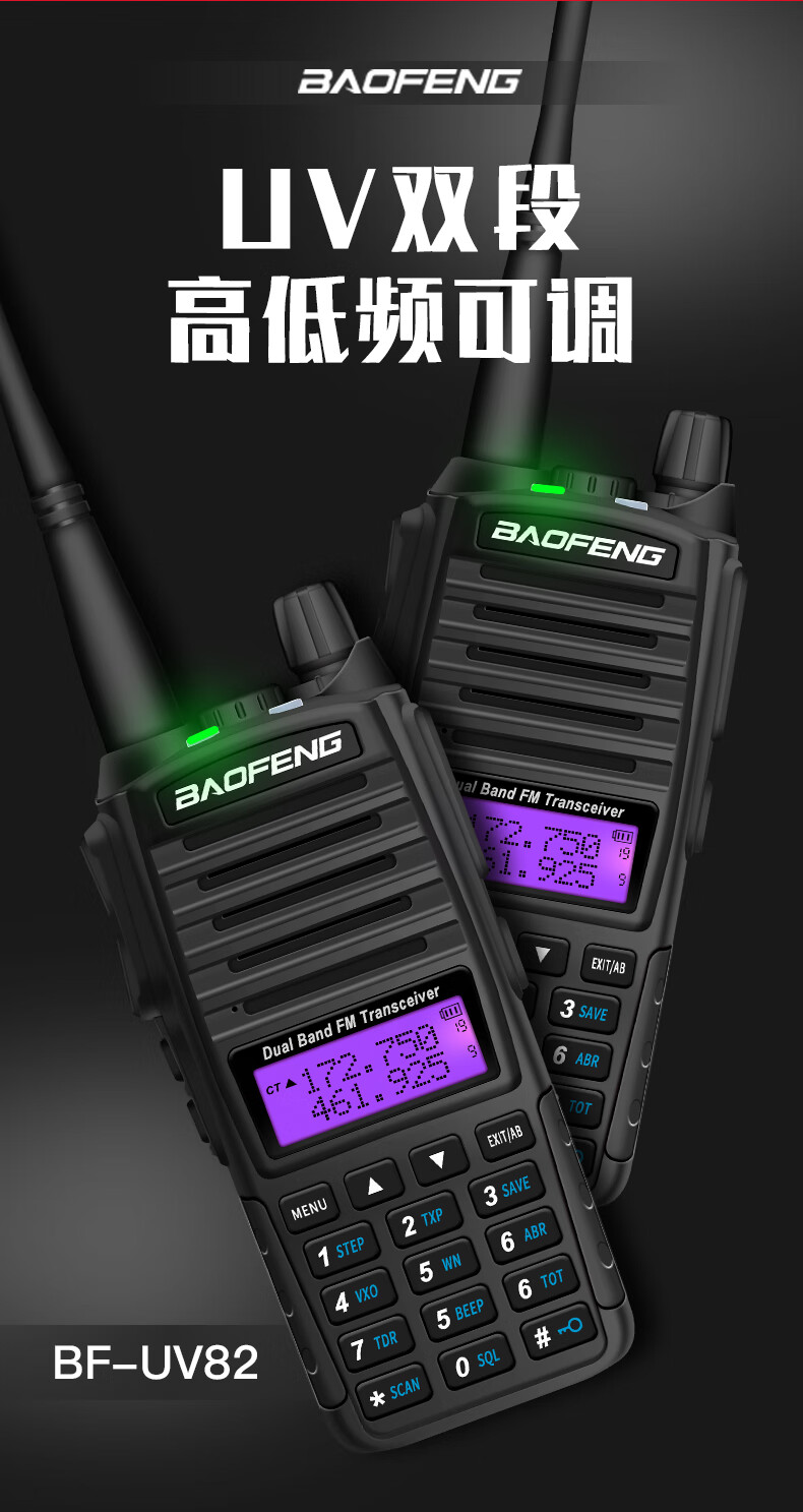 宝锋(BAOFENG)BF-UV82 对讲机远距离双段双守手台无线车载电台大功率数字调频对讲器户外自驾游手持机