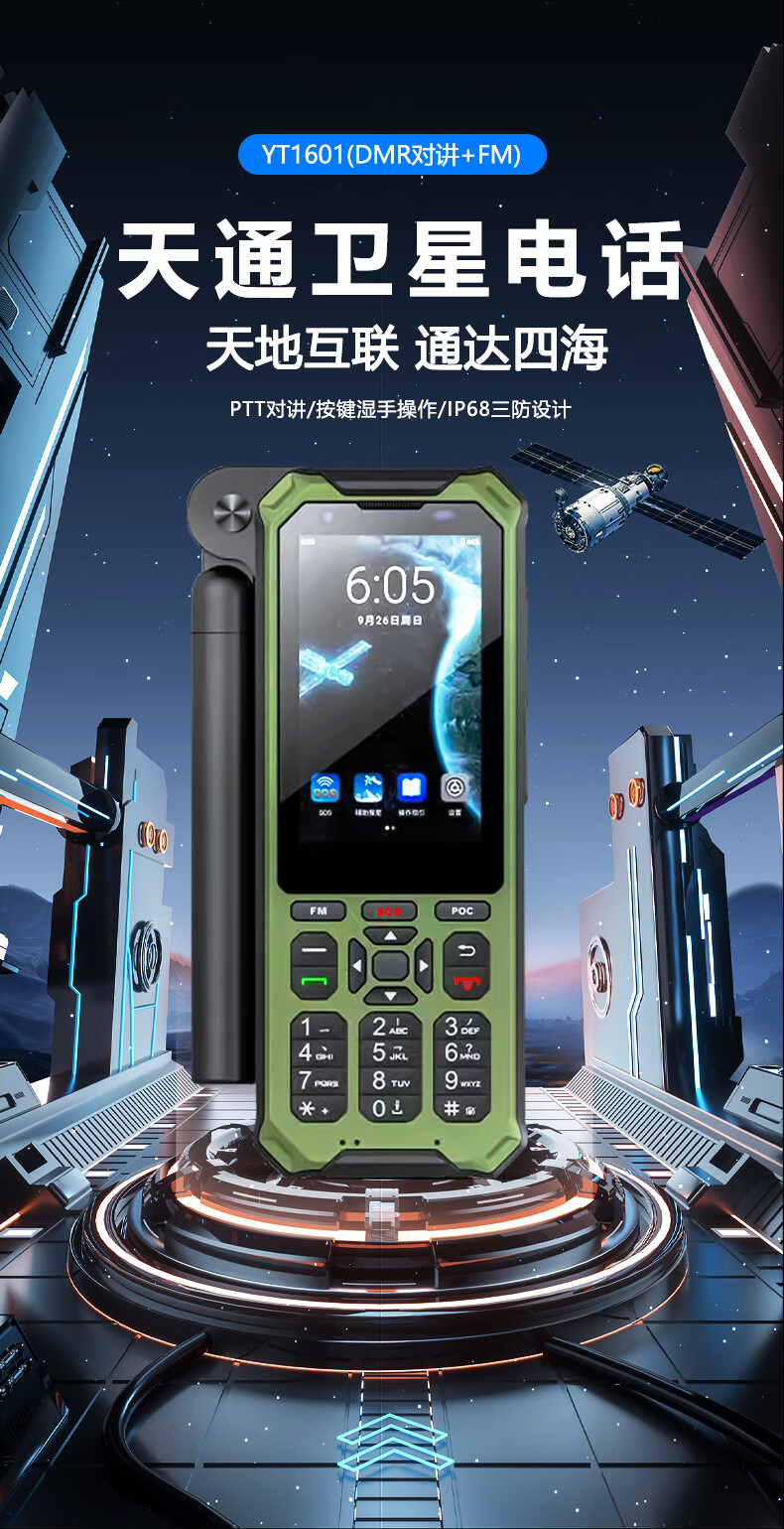 商品名称:麟云云天智能卫星电话YT1601墨绿基础版单模户外应急通讯终端DMR对讲