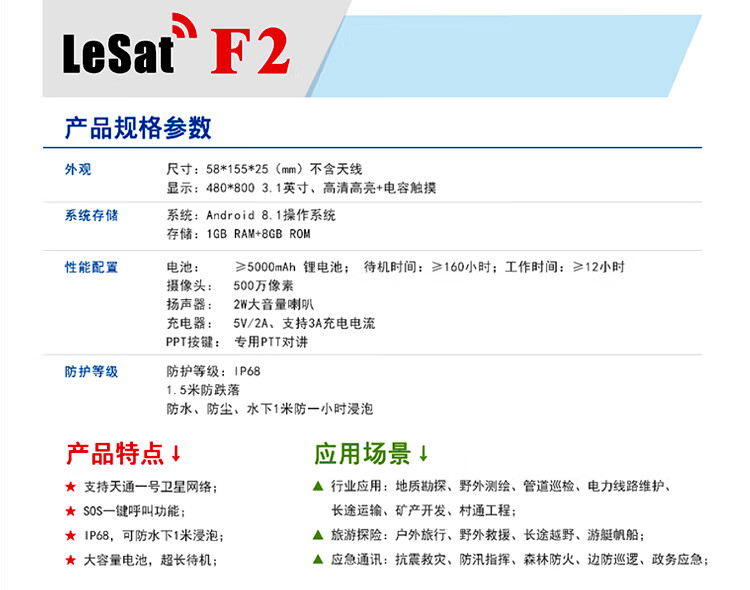 商品名称:LeSat F2天通1号卫星电话 国产单模卫星手机单位/台